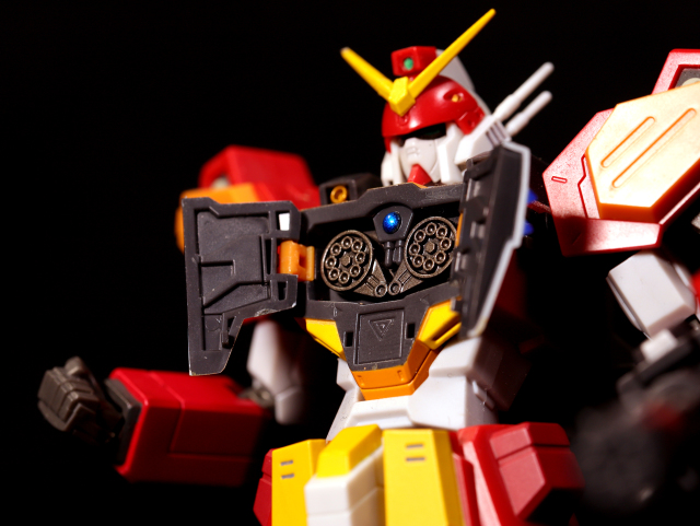 被胸部的左右開閉式裝甲所掩蓋著的格林機關炮。通常連同頭部的火神炮和肩部的機關炮一起發射。