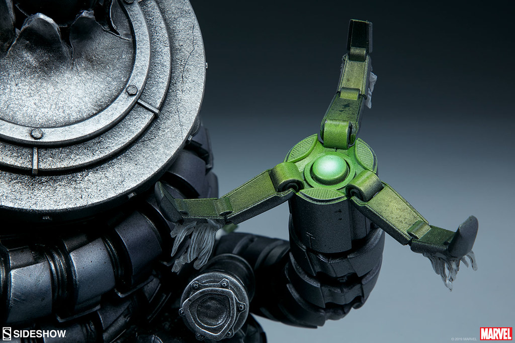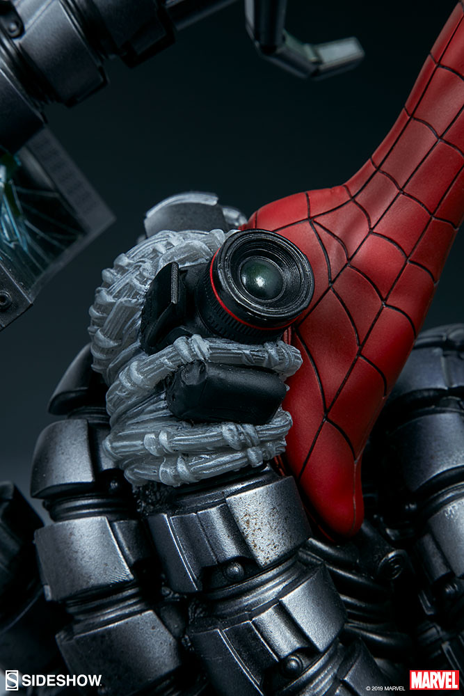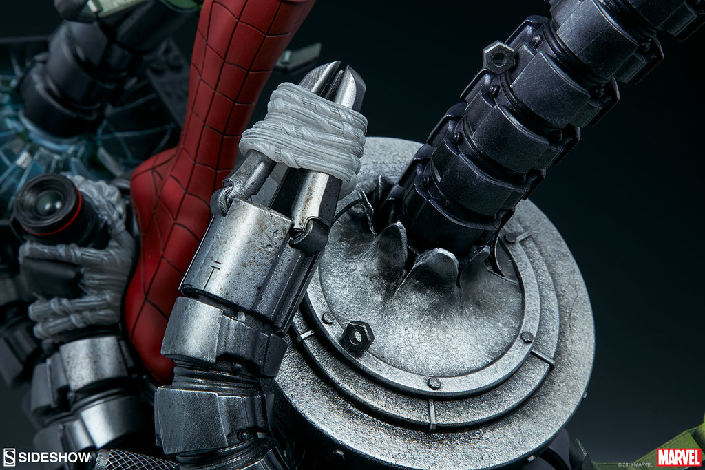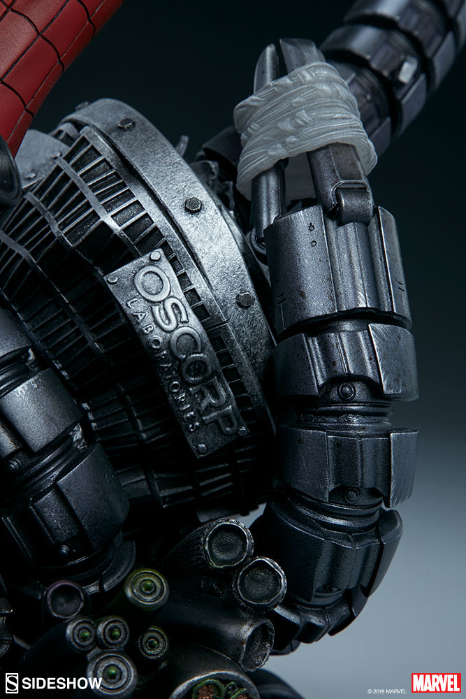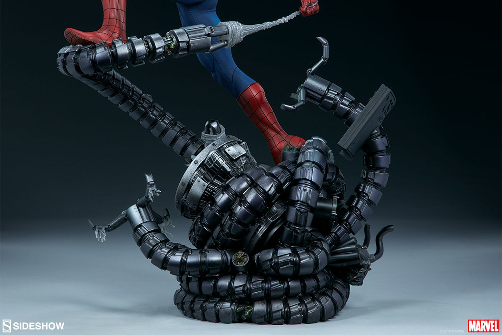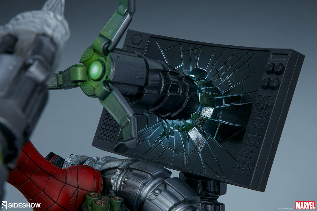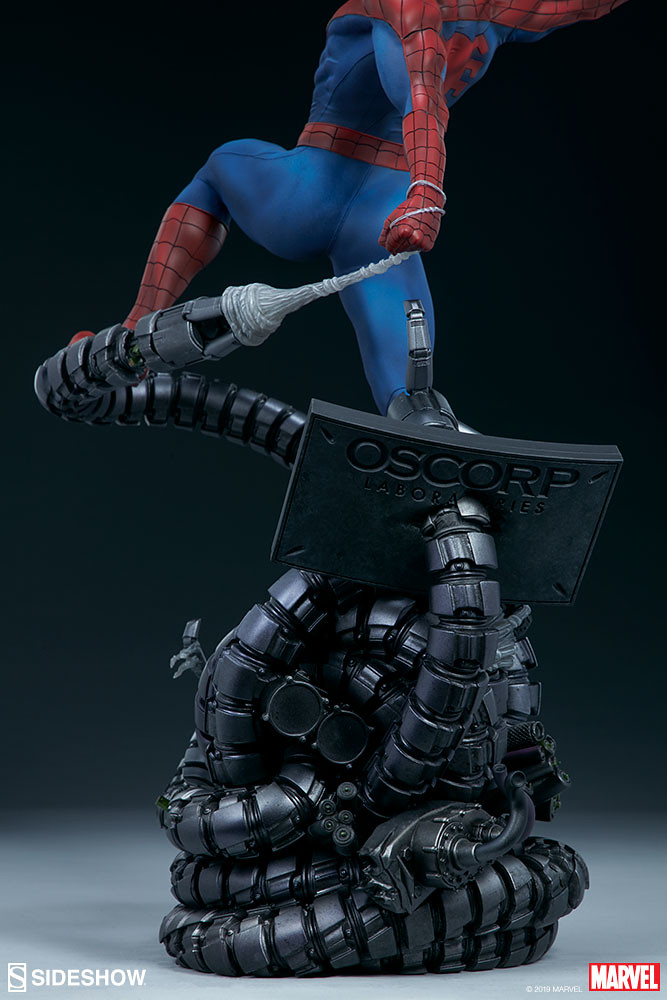 地台是以八爪博士的機械觸手、奧氏企業(Oscorp)實驗室為題製作,呈現纏繞狀態、給人強烈壓迫感的機械觸手和實驗室器材皆施以銀灰色的金屬感塗裝,雖然蜘蛛人已經用蜘蛛絲阻止了兩根爪子的行動,但剩下的機械觸手依然朝他猛烈地襲來,而兩個打開的爪子還內置了LED 發光功能,點亮之後更具臨場感!仔細一看,還能發現被蜘蛛絲固定的相機;在EX版中,則追加了一顆大眼版本的蜘蛛人頭雕。