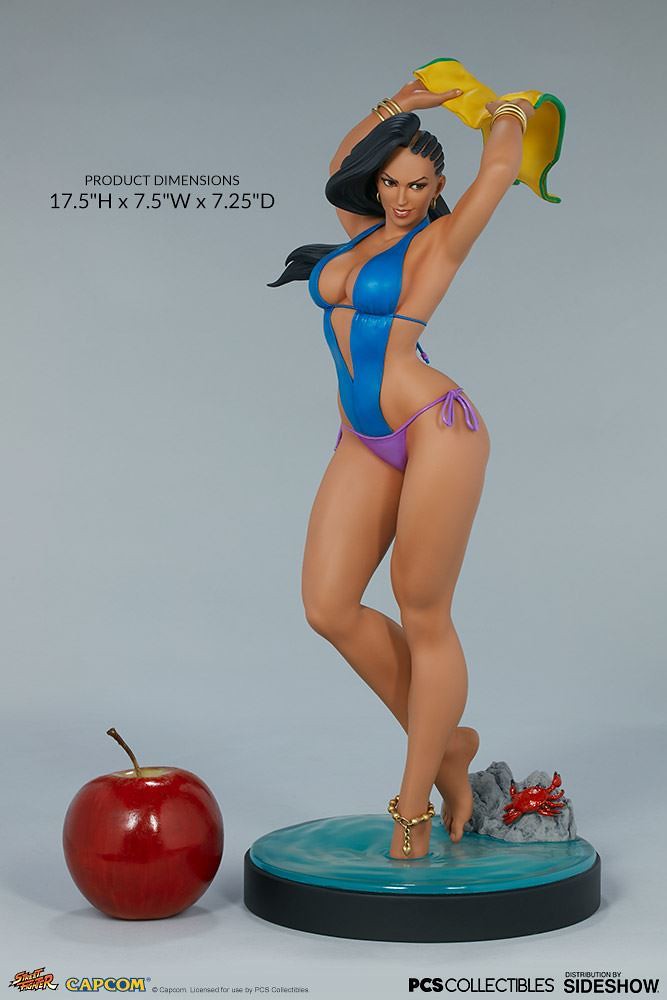 「蘿拉 1/4 比例全身雕像」高約44.4 公分,是以遊戲中的泳衣造型設計,蘿拉雙手拿著脫下來的黃色背心,高衩深V的泳衣將肉感十足的火辣身材完美展現,再加上小麥色的肌膚,整體散發出拉丁裔女性所特有的魅力與美感,深刻的臉部輪廓、一半髮辨一半柔順的黑長髮,以及耳環、手鐲、腳鍊等飾品也考究還原,陰影塗裝讓身形曲線更加誘人!EX版還追加了畫家Edwin Huang 所繪製的蘿拉複製畫。