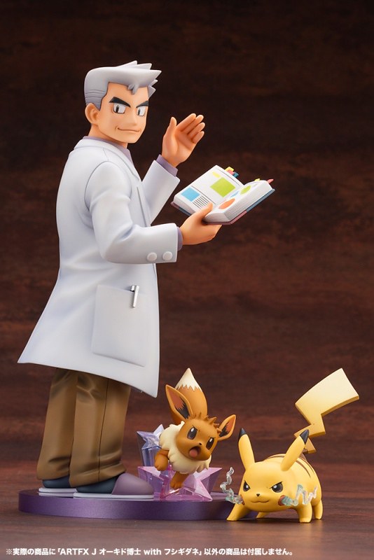「ARTFX J 大木博士 with 妙蛙種子 1/8比例模型」與過去系列作相同以擔任《精靈寶可夢》系列插畫與設計的「ありがひとし(有賀ヒトシ)」老師繪製的插畫為基礎製作,雕塑出五官佈有皺紋、露出穩重而溫柔笑容的模樣,手中的研究資料表現出寶可夢權威的可靠姿態,一旁還有正在使出藤鞭的妙蛙種子,生動的表情和動作相當可愛!