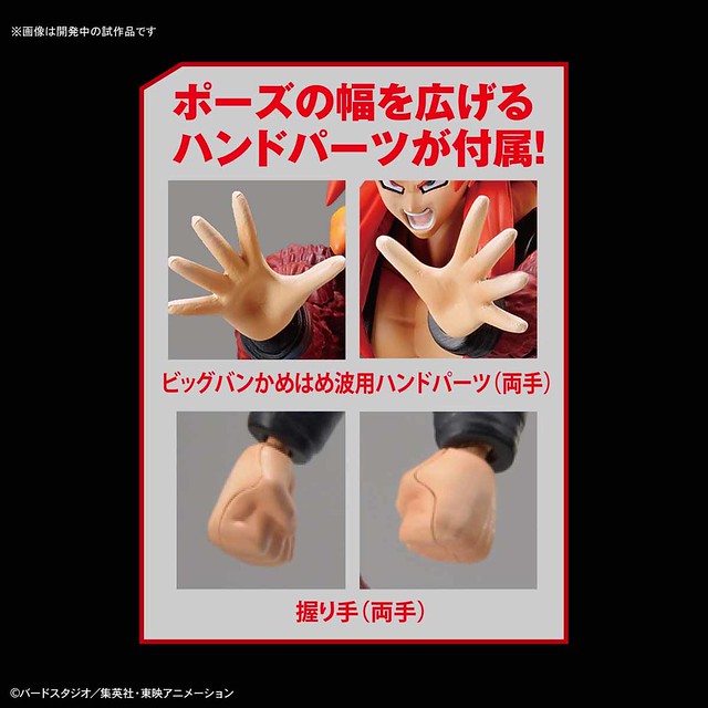 「Figure-rise Standard」系列最大的亮點就是「Muscle Build System」(肌肉建構系統,マッスルビルドシステム),可以因應本身作品的動態而能改變肌肉造型,這次也有招式特效配件來附錄,以及多款不同手首配件可以替換、支撐架與底座、兩款不同表情配件可以替換等等,喜愛《七龍珠》動畫系列的玩具人可以參考一下歐!