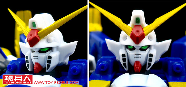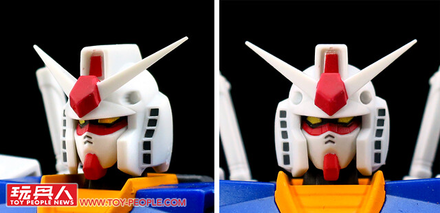 ▼ 頭部天線以硬質零件製作,不容易像 ROBOT 魂有歪斜變形的情形發生。而頭部攝影機、感側器、兩側散熱孔皆有完整塗裝,不過細小地方會有一些溢色的問題。