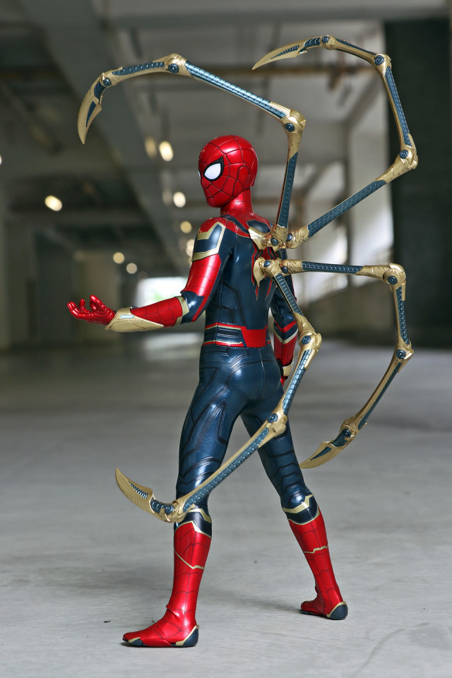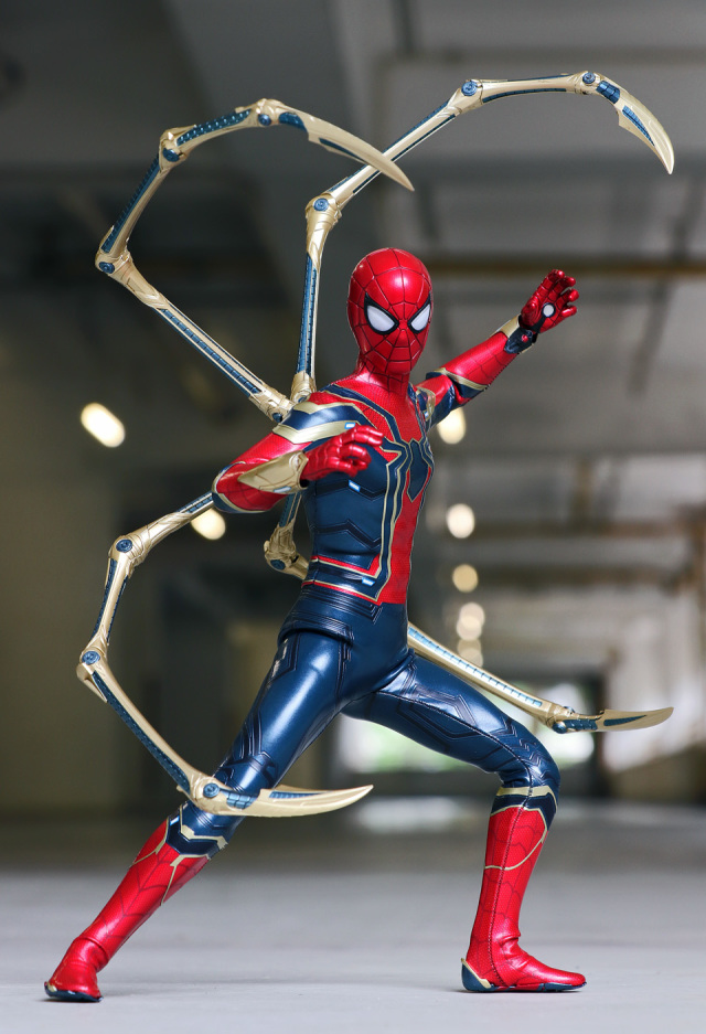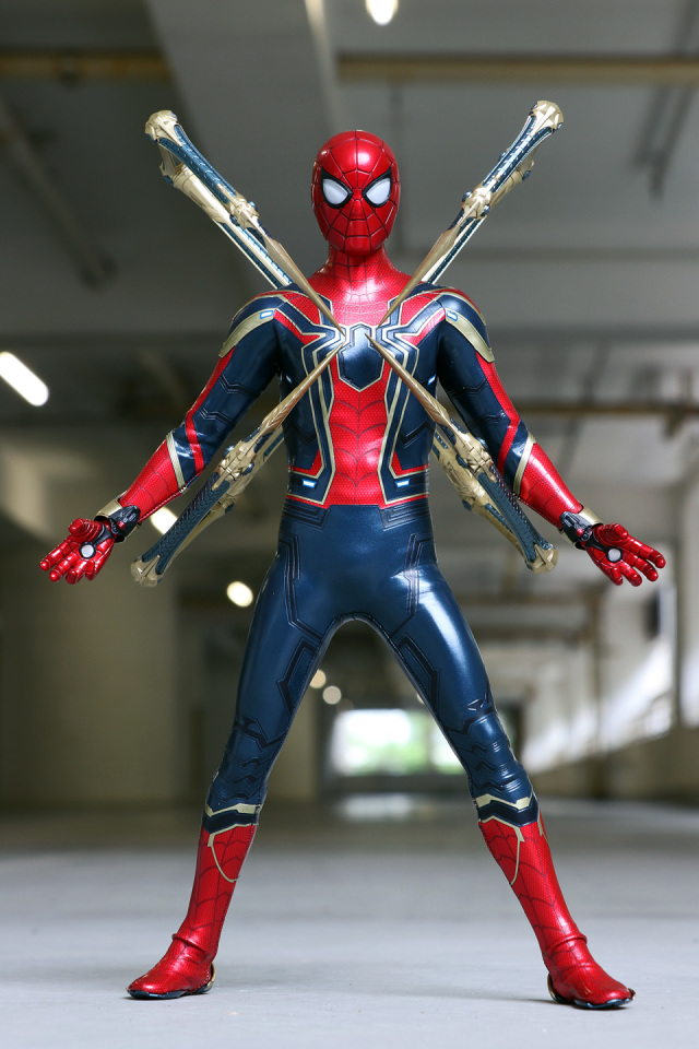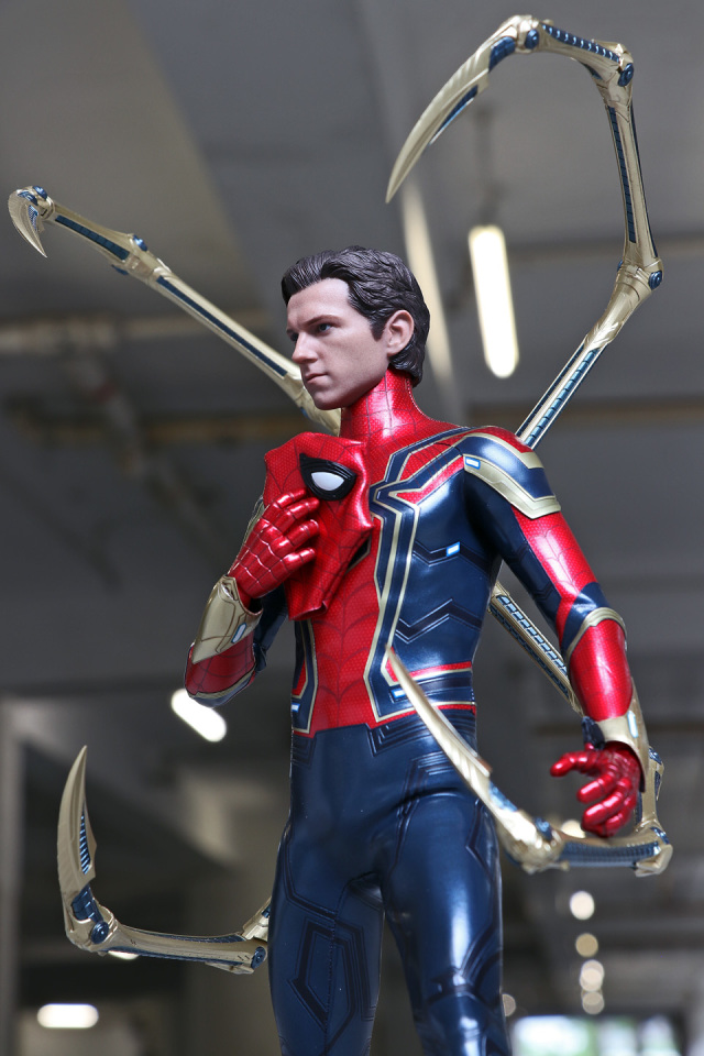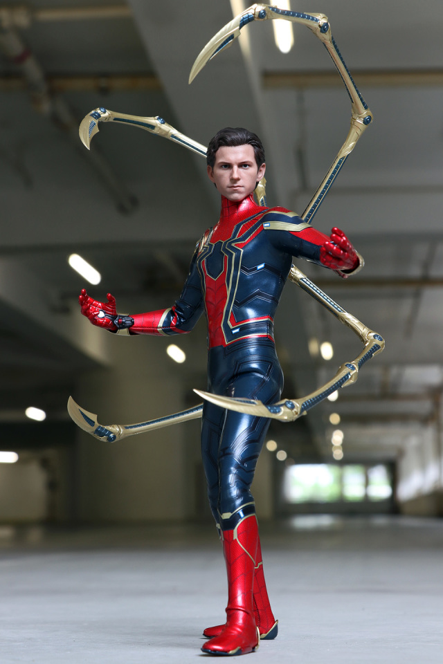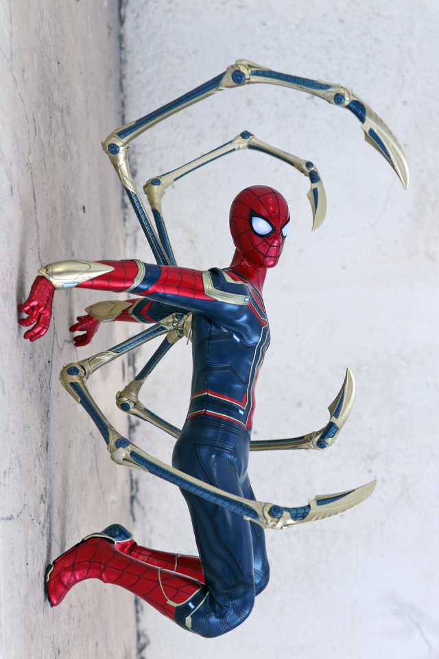本體高約 28.5cm,連蜘蛛爪超過 34 個可動關節。手腕位置裝的蜘蛛絲發射器 (Web Shooter) 能裝配置不同形態的蜘蛛絲外,人偶背部更附設了 4 支引人注目的金色機械蜘蛛爪配件。每支機械蜘蛛爪都擁有4個活動關節,能將《復仇者聯盟3 - 無限之戰》中的各動作場面忠實重現。