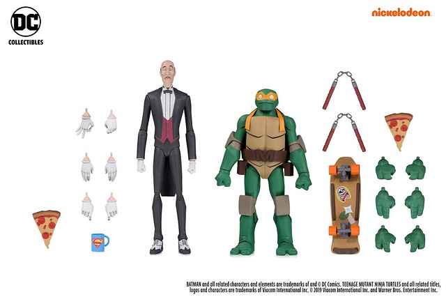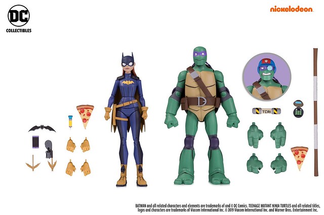 《蝙蝠俠大戰忍者龜》的故事敘述許瑞德與腳族幫派來到高譚市,不但與忍者大師結盟,還找上了小丑要毀滅這座城市;另一方面,神龜四兄弟也與蝙蝠俠、蝙蝠女等人合作,攜手粉碎敵人的陰謀......。本次DC Collectibles 以一位DC角色搭配一位忍者龜角色的邪惡方式推出雙人包,並附屬多個替換手與披薩、各式武器配件,怎麼看都覺得荷包君要不妙啦~!雖然目前官方尚未公開詳細的商品資訊,但推測人偶應為6 吋大小。