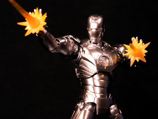 由於本裝甲只是試作型的關係,只具飛行的功能,並沒有裝備任何武器。雙手上的脈衝裝置 (Repulsor) 一開始也只是用於穩定飛行的用途,只是在後來才被史塔克改為光學兵器所用。