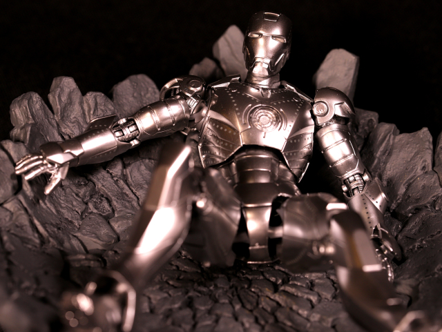 經過結冰的危機後,馬克二號裝甲的試飛一切都很順利,豈料到臨尾才大意失手。史塔克在裝甲還未完全著地之際就把電源關掉,而擁有著相當重量的裝甲就自然向下墜。不過由於天花板的承托力不足以抵受裝甲下墜的衝力 (F = ma 笑),因此史塔克就跌穿幾層,直達地庫了。