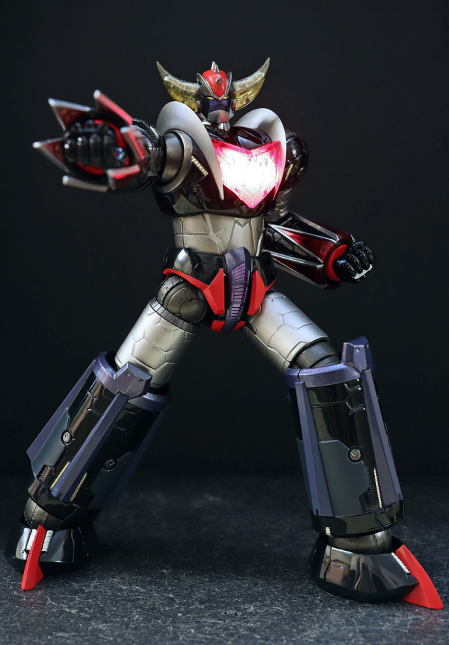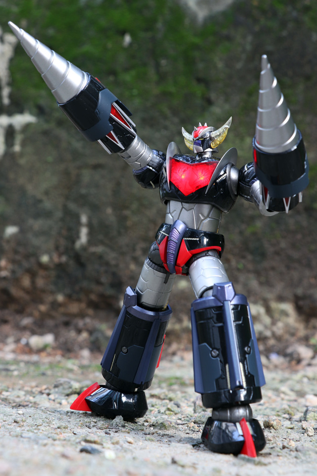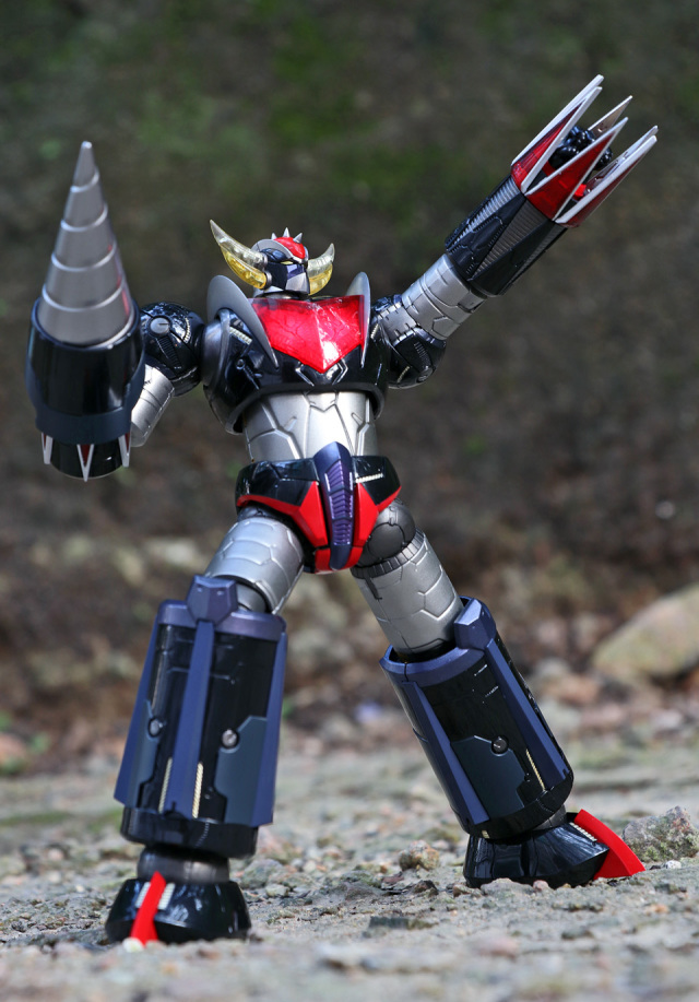 巨靈神主體高約 170mm,Spazer 全長約 190mm。配件包括三對造型手配件、破碎鑽頭、飛碟武器組件、月牙剷、専用台座等等,加上心口的 LED 燈效,故可玩性不俗。整體塗裝亦不錯!今次的 QC 沒有太大問題,但仍有小量花痕等情況出現。外型比例是眾多巨靈神產品中暫時最好的一個。關節鬆緊度適中,可動性亦與 Bandai 的巨靈神同級。