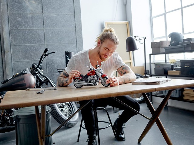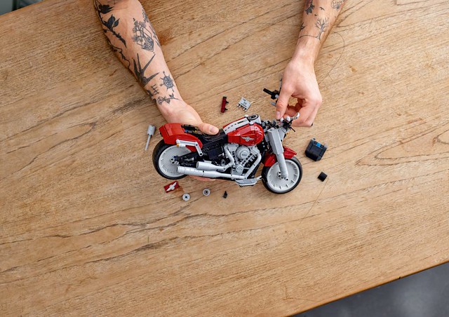 樂高主打高年齡粉絲的「Creator Expert」這條產品線已經推出過Mini-Cooper、法拉利F40、福斯金龜車、倫敦雙層巴士、福特野馬....等經典車款,這次與哈雷摩托車 (Harley-Davidson) 共同開發的「LEGO 10269 哈雷 Fat Boy」共有1023 片零件,組裝完成後長度來到33 公分,高度則是20 公分!