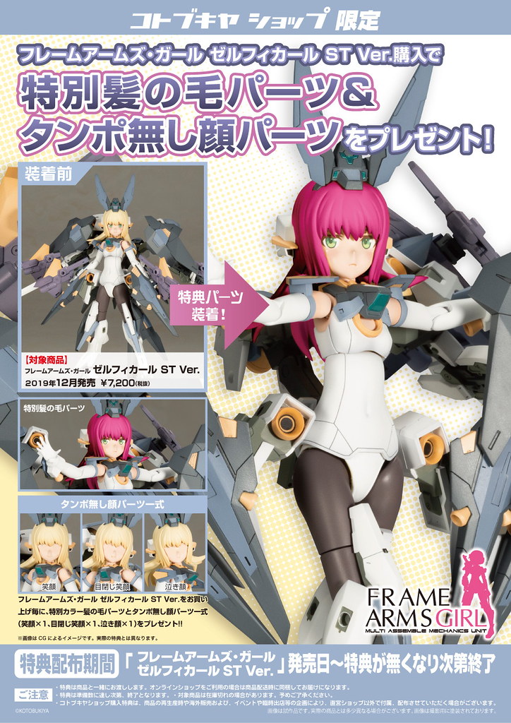 由日本壽屋玩具公司(KOTOBUKIYA)發行的暢銷組裝模型系列《Frame Arms Girl 骨裝機娘》繼「潔菲卡爾」後,今(11)日再度發表了最新商品「FAG 潔菲卡爾 ST Ver.」預計於 2019 年 12 月發售的消息。