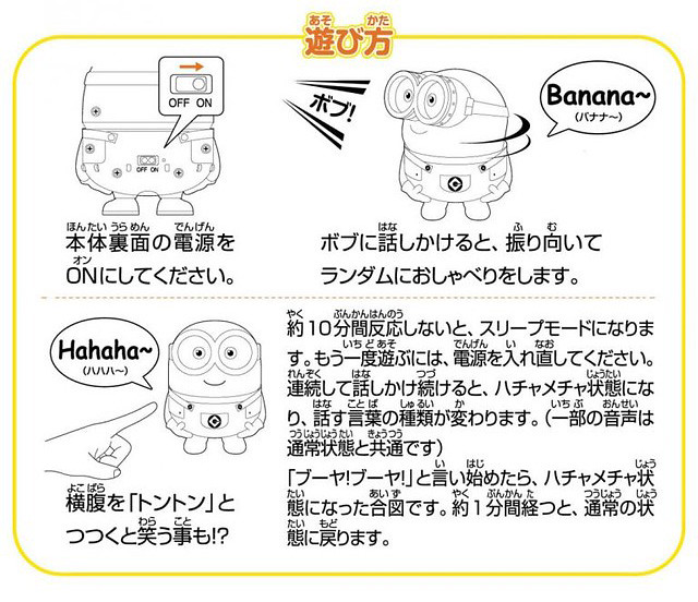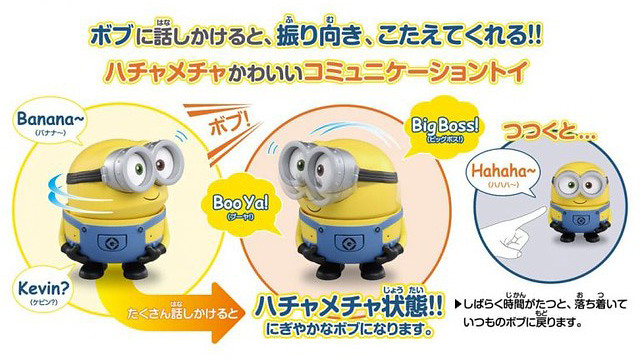 知名日廠 TAKARA TOMY 玩具公司(株式会社タカラトミー)之前以《精靈寶可夢》為題材,公開過「哈囉皮卡丘 互動式機器人」與「哈囉伊布 互動式機器人」相當受到歡迎,這次將繼續以大人氣動畫電影《黃色小小兵》為題材來推出「哈囉蘿蔔 互動式機器人(Bello! ミニオン/ボブ)」(名稱暫譯)!