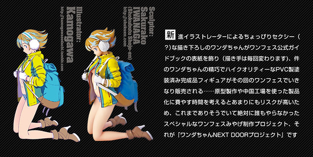 『Wonda-chan NEXT DOOR PROJECT』是日本海洋堂玩具公司自 2016 年起與 GOOD SMILE COMPANY 合作的企劃,目的是要將 Wonder Festival 長久以來的人氣形象角色「Wonda-chan(ワンダちゃん)」以官方商品的水準立體化。每次負責造型設計、原型製作的皆是由極具潛力的新人繪師,和擁有實力與經驗的原型師搭配合作,讓熱愛 WF 的參與者們每次都能收藏到風格百變、品質精巧的 Wonda-chan 塗裝完成品模型。不過自第七彈「FILE:07」開始,由於中國代工廠的人事、原料成本大幅上漲而無法維持以塗裝完成品推出的形式,往後作品將以未塗裝GK套件形式販售。2019 年夏季場由於諸多原因,海洋堂宣佈「FILE:08 Mika Pikazo Ver.」將會是最後一彈作品。