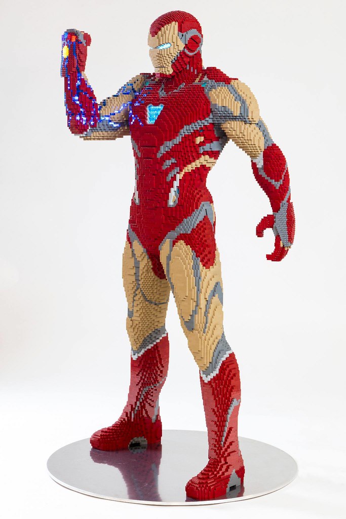 接著要看到的是戴上奈米手套的鋼鐵人,除了高度還原增飾了碳灰色的紅、金配色戰甲外,在雙眼、胸口反應爐、裝甲的數個發光點位置還用上半透明的水藍色磚,重現發光效果,戴著鑲上無限寶石奈米手套的右手部分則是以深藍色的磚表現出從拳頭延伸到右胸的奔騰電流(模型內部應有設置光源),同樣是精彩萬分。