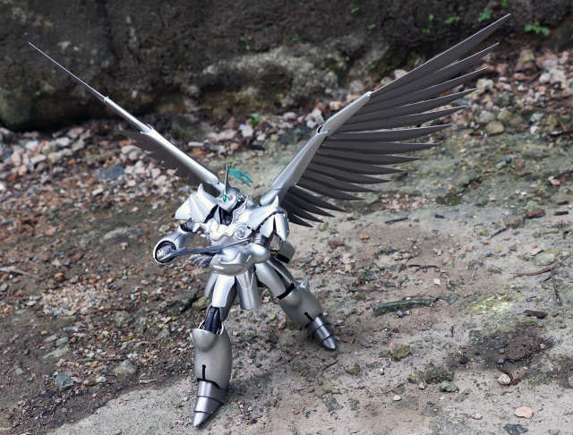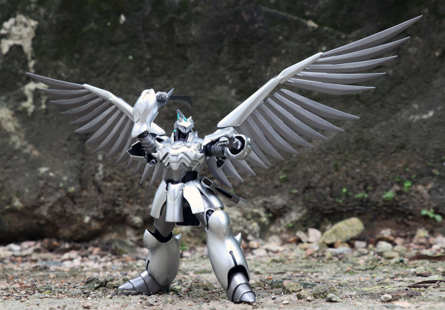 其最大賣點必定是忠於原著的強大外型。飛甲兵有著中世紀騎士甲冑的風格,巨大的翅膀是她最為吸睛的地方。翅膀部分亦包含 3 處可動關節,故可擺放劇中任何華麗的姿勢。關節可動範圍十分之高 (特別是頸部),要擺出師氣的姿勢亦毫無難度;關節整體感覺很"實淨"。亦因為是全著色 (重點是銀色......) 的關係,全身上下位置極易被刮花;另本体的花痕亦不少...... 玩的時候要多加留意了。