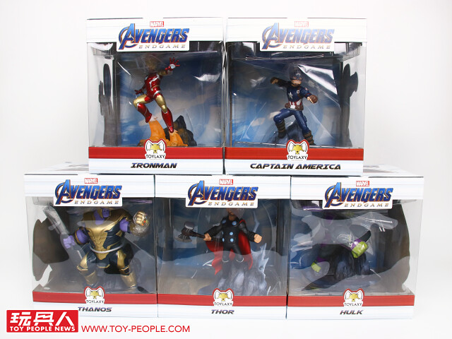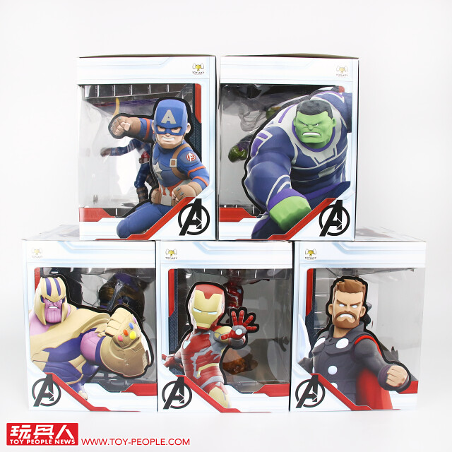 ▼ 讓我們看看這次的主角們吧!本次的第一波共有五款角色:薩諾斯、鋼鐵人馬克85、美國隊長、索爾、浩克。儘管作品的尺寸不盡相同,包裝盒方面則是相同規格,並採用可直接看到內容物的開窗樣式。