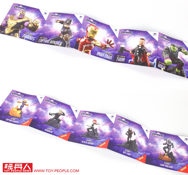 ▼ 拆盒!這次的作品都有附上一張印製了第一波&第二波角色的介紹小卡,可以看到第二波將收錄驚奇隊長、鷹眼、黑寡婦、蟻人,以及戰爭機器。