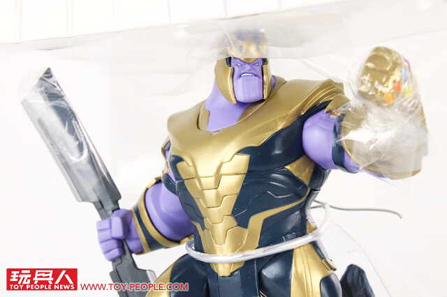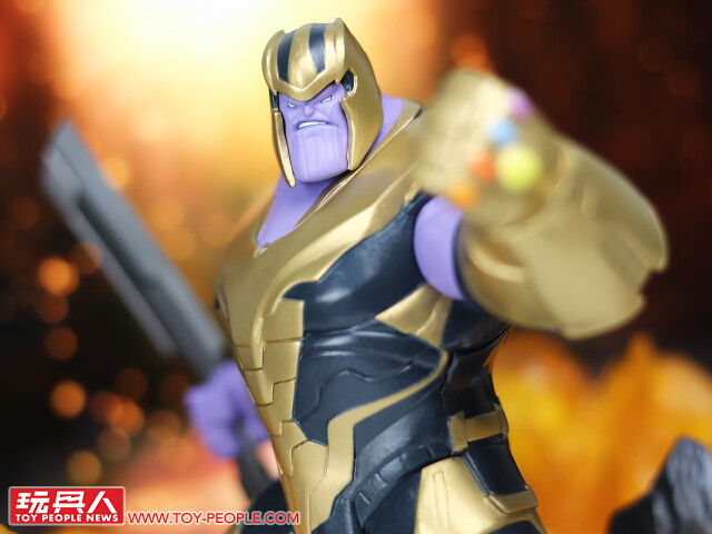 身為《復仇者聯盟:無限之戰》與《復仇者聯盟:終局之戰》的終極反派,薩諾斯在Toylaxy 的Q 版比例詮釋下,其壯碩的軀體顯得更加厚實、巨大,加上身披戰甲的姿態,極具魄力!本作讓薩諾斯展現出左手高舉無限手套、右手握著巨型刃型兵器的姿態,臉部則是咬牙切齒地狠瞪造型,觀賞、把玩起來都是份量十足。