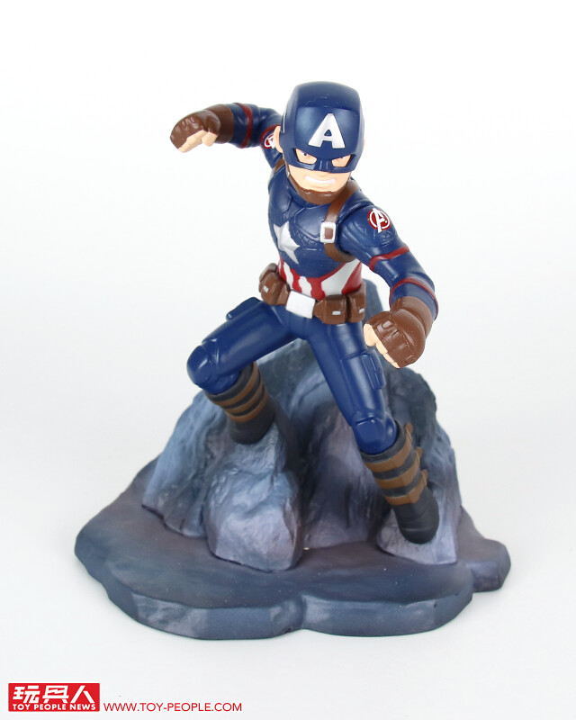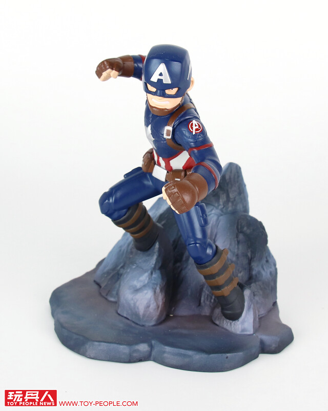 在看完浩克之後,這次採用經典造型設計、雙手握拳呈現戰鬥姿態的美國隊長不管是戰衣的細緻度與塗裝都大勝XD~ 頭盔上的「A」、胸前的星星符號、腰帶與釦帶的細節皆沒有放過,但沒有附上盾牌感覺似乎就是少了點什麼啊~