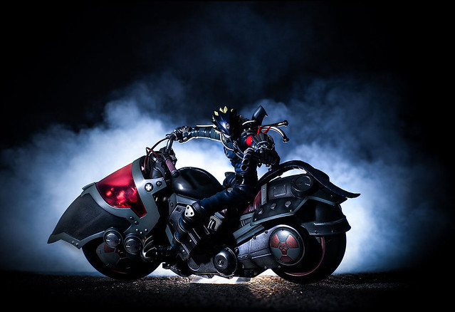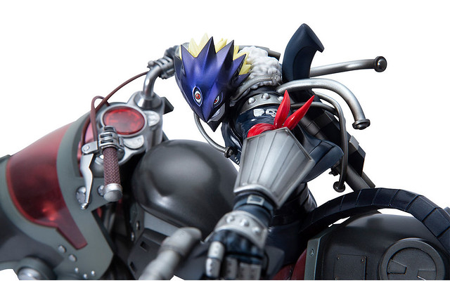 「墮天地獄獸&貝希摩斯」以 Megahouse 最高等級的造型技術、塗裝品質製作,透過全高 18 公分、全長 30 公分的巨大尺寸呈現騎乘貝希摩斯的墮天地獄獸,服裝造型極為細膩,透過塗裝表現皮衣、金屬拉鍊、手套、霰彈槍的質感,鞋子部份更有沾粘泥沙的舊化效果。