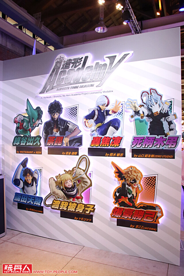 一入場首先就是這次【BANPRESTO EXPO 2019】主打的模型作品與《我的英雄學院》主題區,這裡展出多款「THE AMAZING HEROS」、「AGE OF HEROS」、「WCF」系列新品,最讓小編興奮的就是「BANPRESTO FIGURE COLOSSEUM (BFC) 我的英雄學院造型ACADEMY」的作品啦!