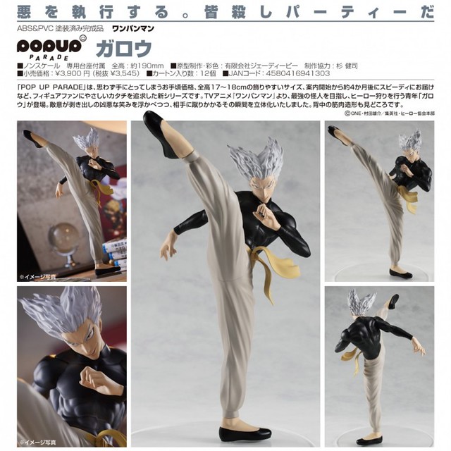 由知名日廠 GOOD SMILE COMPANY 玩具公司所推出的全新塗裝完成品系列『POP UP PARADE』繼「初音未來」、「Kizuna AI」、「哥布林殺手」以及「 埼玉 英雄服版本」之後,將繼續以《一拳超人》為題材來推出最新第五彈作品「餓狼(ガロウ)」預計將於2019年11月發行的消息。