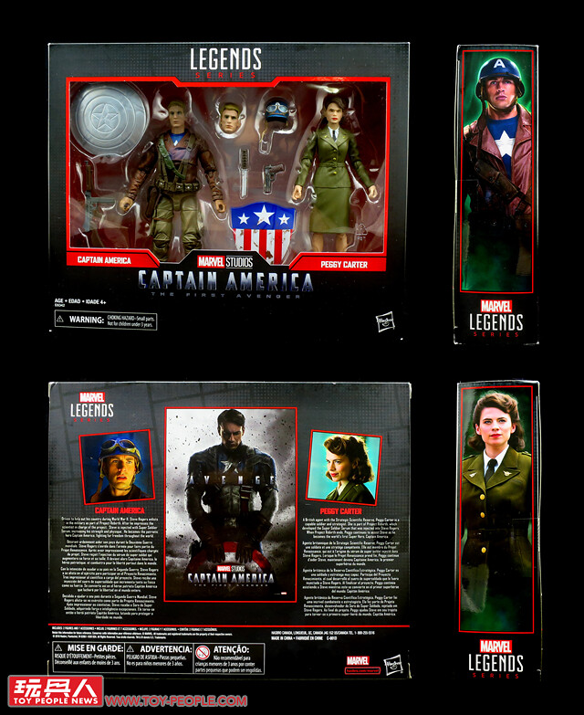 ▼首先,就讓我們來看看取材自2011年《美國隊長》(Captain America: The First Avenger)的「美國隊長」與「佩姬·卡特」(Peggy Carter)雙人包吧!外盒正面是以清楚明瞭的透空窗格來包裝,盒背印有電影的海報及說明,兩側則收錄了兩位角色的劇照肖像。