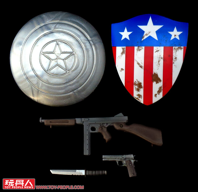 ▼附屬多樣的武器配件供兩人拿持,包括未上漆的原型版汎合金圓盾,以及美隊最原始的星條盾等等。