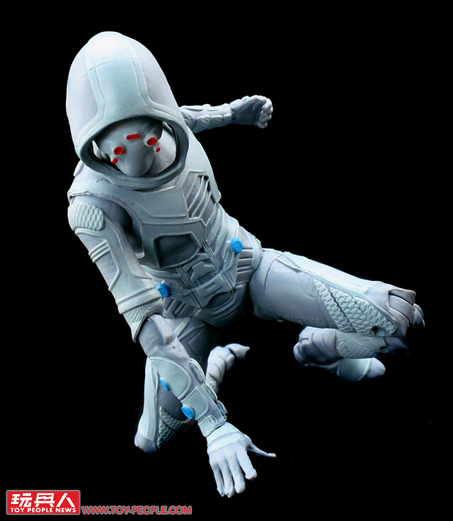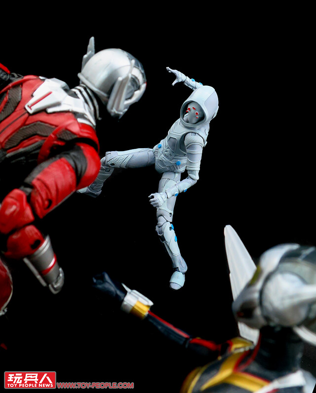 ▼「幽靈」(Ghost),本名艾娃·史塔(Ava Starr),其父艾里哈斯(Elihas Starr)在被漢克·皮姆開除後,自行啟動了量子隧道的實驗,最終以失敗收場,艾娃的父母雙雙身亡,她也因此受到量子爆炸的波及,成了肉身呈現無法定型的「幽靈」,為了汲取量子領域的能量,幽靈與養父比爾·佛斯特(Bill Foster)策劃奪取漢克的行動實驗室而現身於蟻人和黃蜂女的面前。本次的人偶是電影版女幽靈在漫威傳奇系列的首次登場,高度還原了劇中獨特的白灰色匿蹤裝束。