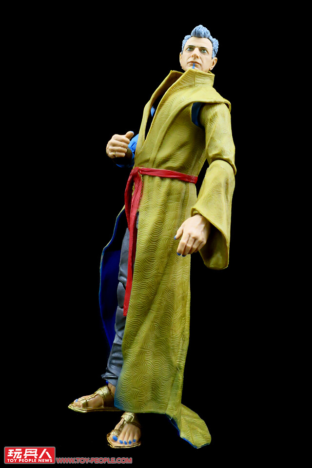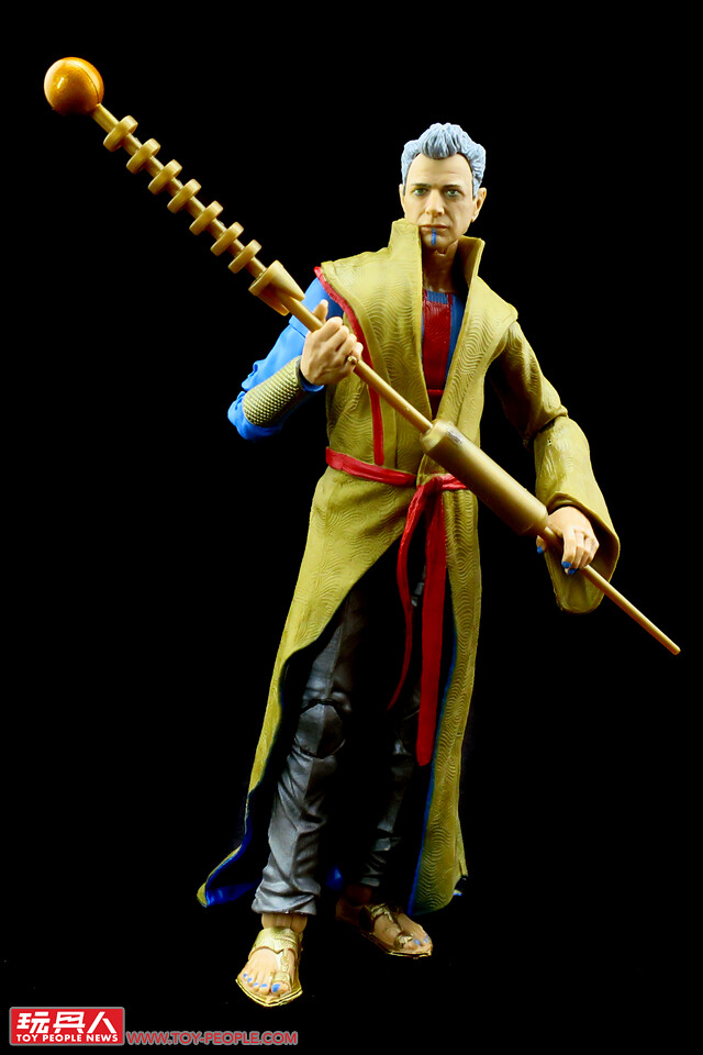 ▼「宗師」(Grandmaster),本名「恩·杜威·葛斯特」(En Dwi Gast),邊陲星球薩卡(Sakaar)的最高統治者,過著夜夜笙歌、酒池肉林的糜爛生活。生性古怪、喜好遊戲人間的宗師在薩卡星上設立了角鬥士競技場,將奴隸為了生存的奮戰視作每日的娛樂節目。本次的人偶不僅還原了宗師色彩繽紛的衣著,在臉部、指甲等細節也都比照劇中登場的樣貌加以呈現,貴氣的金色長袍在腿後的垂綴質感表現得相當真實!