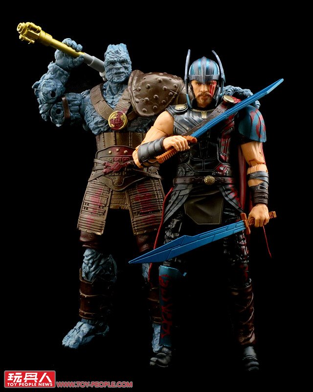 ▼「寇格」(Korg),出身克羅納(Kronan)的石頭人角鬥士,與好友米克(Miek)在薩卡星上和索爾(Thor)相識,而後串連競技場的角鬥士發起革命,推翻了宗師的統治,並來到阿斯嘉(Asgard)協助索爾和洛基(Loki)等人對抗海拉(Hela)。人偶還原了寇格魁梧的身形,皮膚表面的石頭質感也相當地擬真。