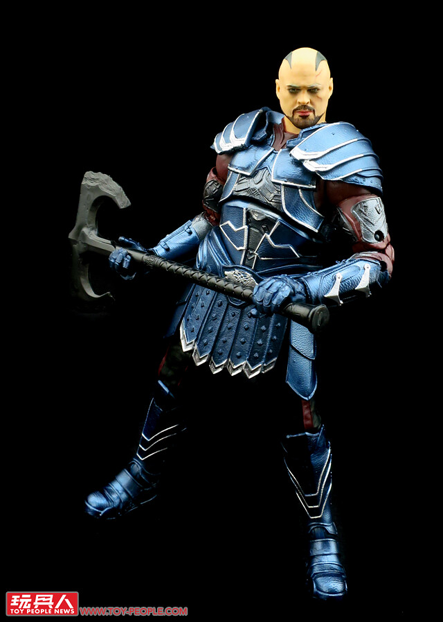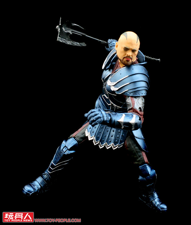 ▼「史克吉」(Skurge),出身阿斯嘉的戰士,生性怯懦卻又期許能有一番驚天動地的作為,在海拉回到阿斯嘉後立刻投誠,被任命為直屬的鬥士「處刑者」(Executioner),最終良心發現,犧牲自我對抗海拉與她的亡者大軍。這款是電影的史克吉首次推出的人偶,不僅將造型復古的厚重裝甲加以再現,其表面也施加了相當亮眼的金屬塗裝。