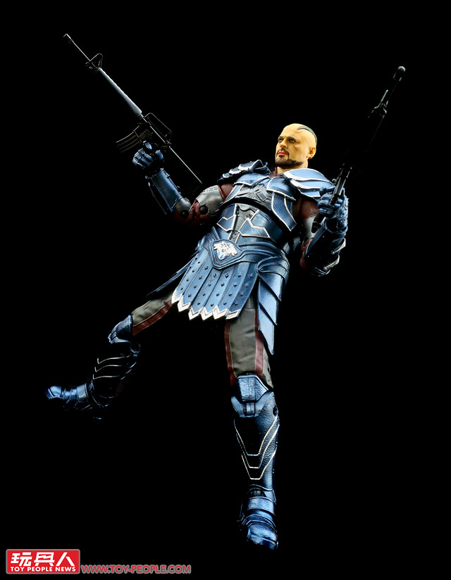 ▼手槍及藍波刀可分別收納至腰間的槍袋和小腿的刀鞘,搭配全身上下靈活的關節,就能重現隊長在劇中大展身手的英姿啦!