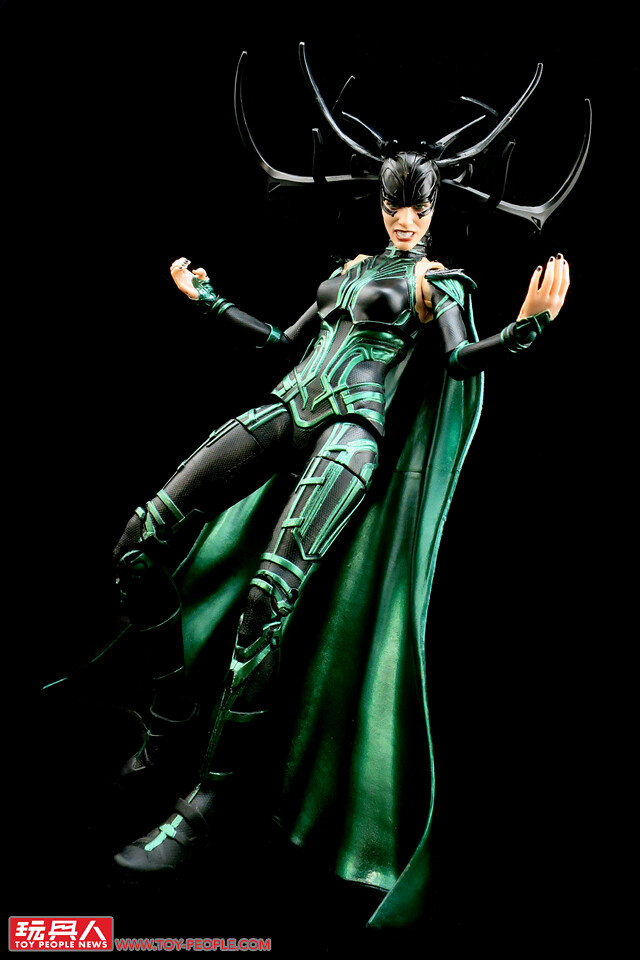 ▼「海拉」(Hela),奧丁(Odin)的長女、索爾與洛基的大姐,生性殘忍好戰,過去曾與奧丁一同爭戰四方,而後被視作危險而將之封印。在奧丁死後立刻破除束縛現身於索爾與洛基面前,意圖爭奪本該屬於自己的阿斯嘉王位。本次的人偶係改良自2017年的版本,增添並修改了若干頭雕,戰衣在配色上也作了部份的調整以貼近劇中的形象。
