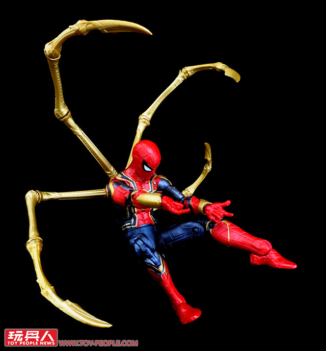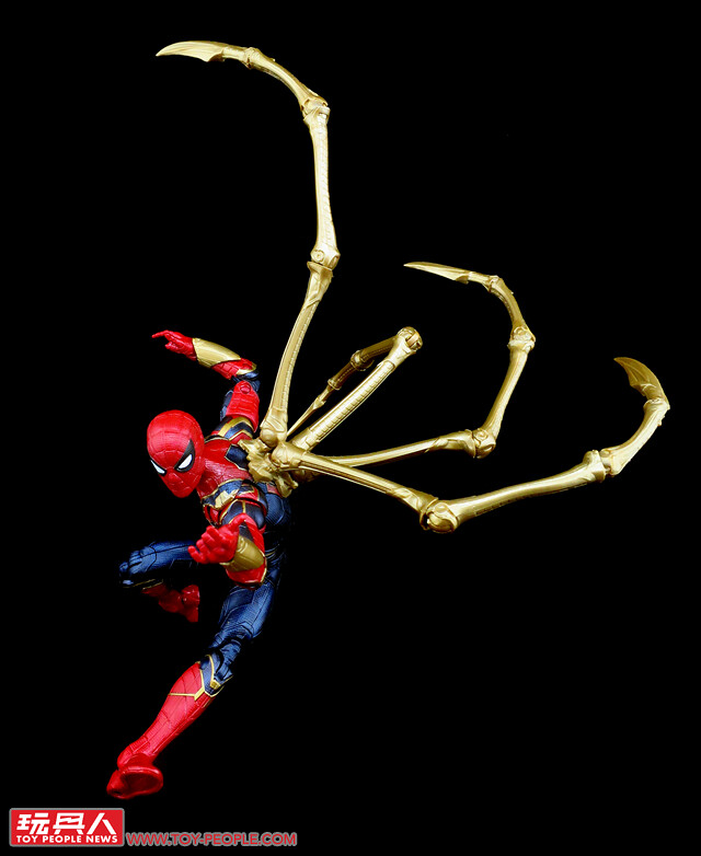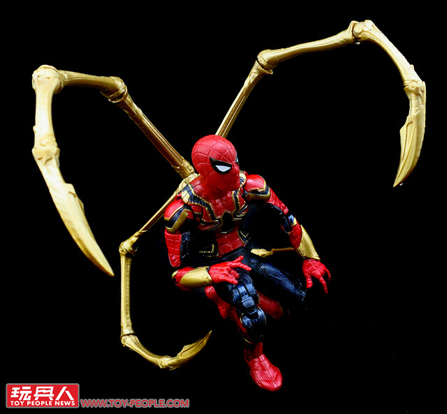 ▼「鋼鐵蜘蛛」(Iron Spider),在《蜘蛛人:返校日》(Spider-Man: Homecoming)結尾時,東尼本欲贈與彼得·帕克(Peter Benjamin Parker)的高科技蜘蛛裝,而後則是在《無限之戰》中正式登場。鋼鐵蜘蛛衣同樣是以奈米科技製成,最大的特徵在於背部的四根巨型「蛛爪」,能夠因應戰場進行多用途的支援。本次的人偶是以2018年的版本進行強化,總算補足了鋼鐵蜘蛛裝不可或缺的四根招牌巨爪。