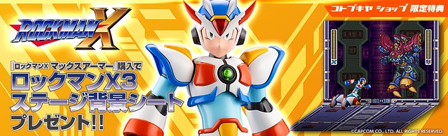 ▼ 另外於壽屋線上商店訂購此作,附有限定特典是「洛克人X3 舞台背景(ロックマンX3 ステージ背景シート)」。