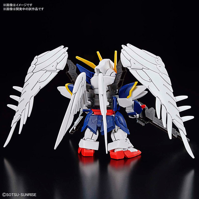 由日本 BANDAI SPIRITS 公司 HOBBY 事業部發行,可自由變換高低頭身骨架的「SDCS(SD CROSS SILHOUETTE)」組裝模型系列昨(30)日晚間開始於日本台場 THE GUNDAM BASE TOKYO 的 NEXT PHASE GUNPLA 展示區中,展出了預計於 2019 年 11 月發售的《新機動戰記鋼彈W》新商品「SDCS 飛翼鋼彈零式EW」試作品。