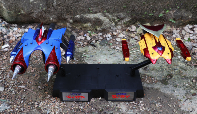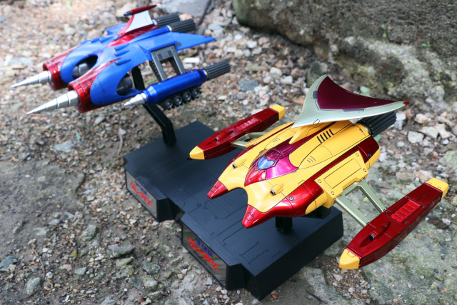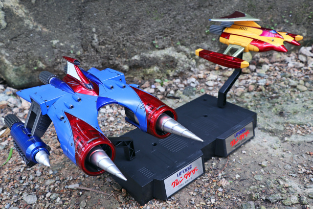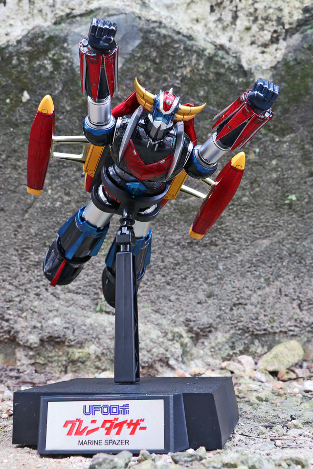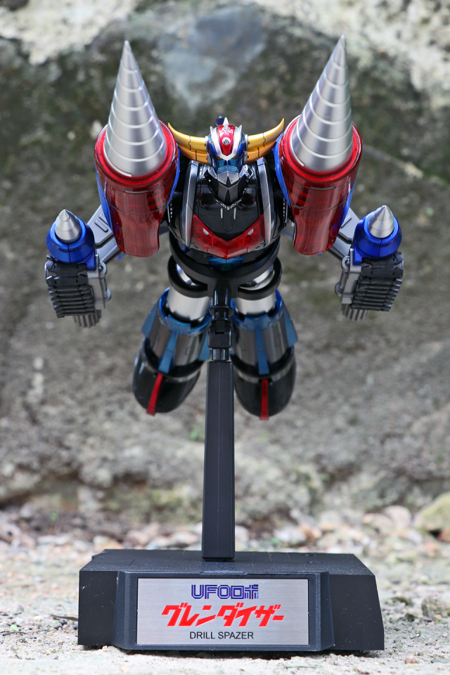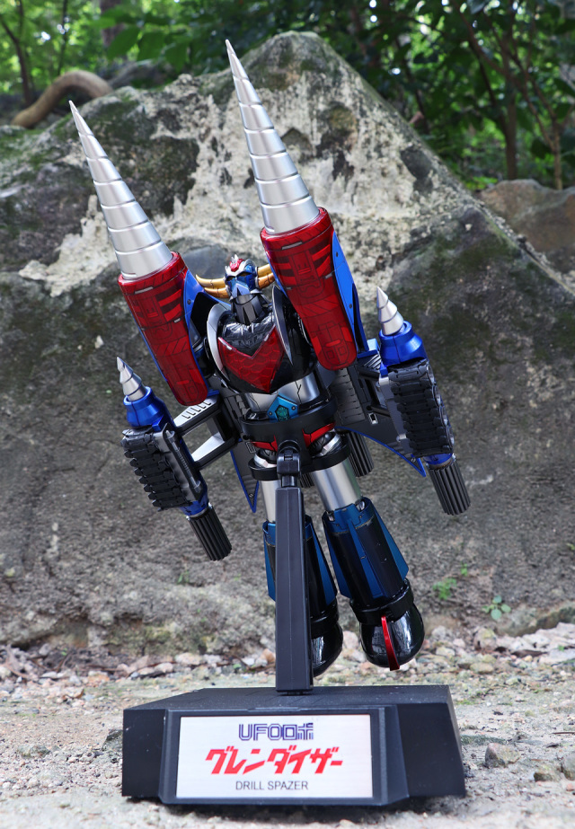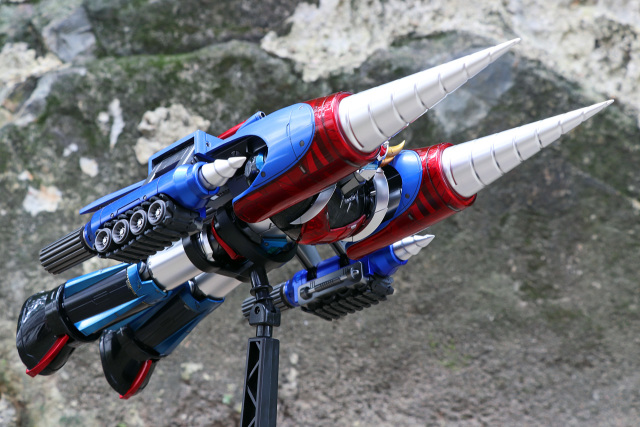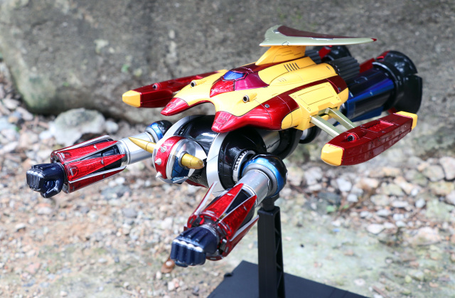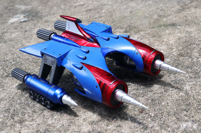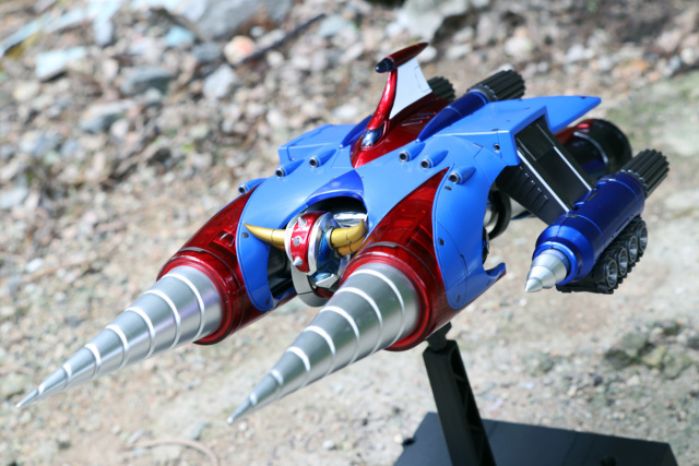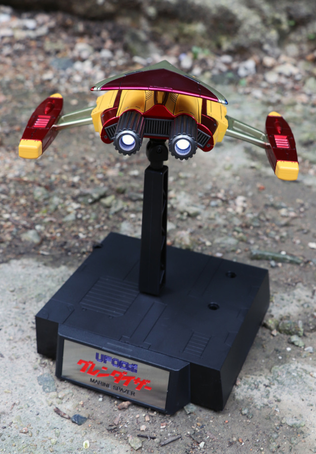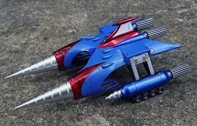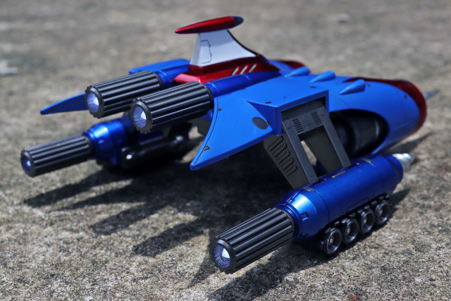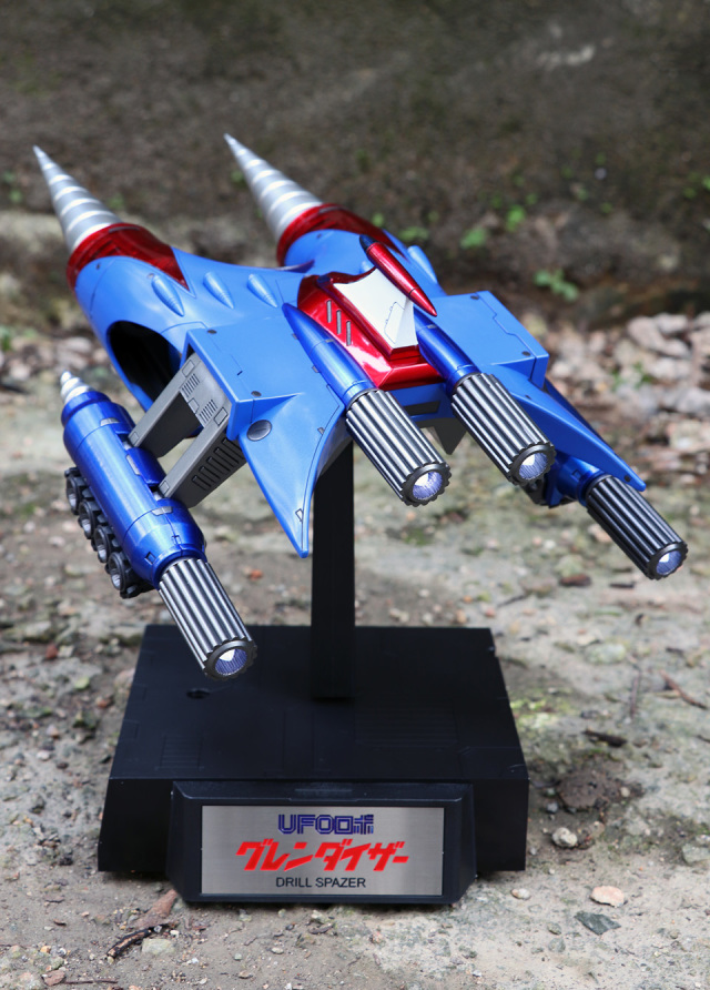 本体的引擎部分皆有 LED 燈。雖然本体不是合金制,但整體依然十分重手。Drill Spazer 及 Marine Spazer 的飛翼部份皆是可動或可以伸縮,Drill Spazer 的鑽頭更可以伸長及其履帶亦是可動...... 想我想起小時候把玩超合金時的情況。我個人最讚的反而是各台座的設計,佈局和安排也很有心思。