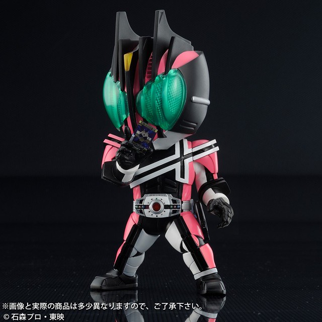 「Deforeal 假面騎士Decade」使用可愛的 2.5 頭身比例再現 Decade 抽出 Final Attack Ride 卡片準備施展必殺技招牌姿勢,特徵的條碼頭、品紅色裝甲、腰帶...所有精密細節凝聚在 15 公分尺寸中,複眼部份使用透明材質製作,腰帶更能自由替換原版與《假面騎士ZI-O》再登場時所配戴的「NEO Decade Driver」腰帶!