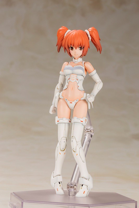 「CROSS FRAME GIRL BRAVE GIRL」是將一般版CROSS FRAME GIRL 我王凱牙移除裝甲零件後,僅以高人氣 BRAVE GIRL 素體販售的版本。套件大致沿用我王凱牙版本,並追加了和「FAG 祈仙蒂亞」相同規格的素腕、素腳零件與多種能連結 3mm 卡榫的新規零件,臉部表情已塗裝完成,收錄多種 PVC 製造型手掌。不僅能呈現更加完整的素體型態,也大幅昇與其他 M.S.G、骨裝機兵、骨裝機娘連動的可玩性!