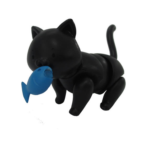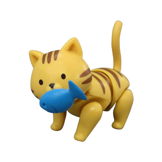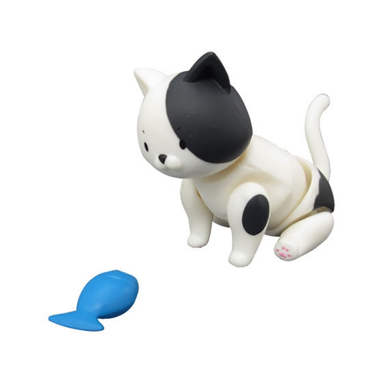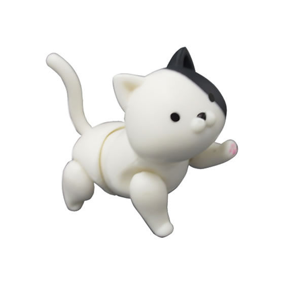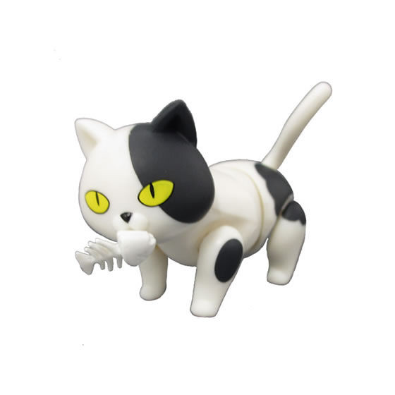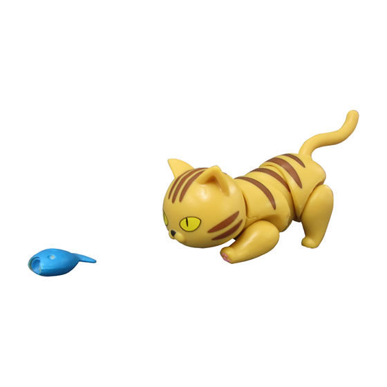 「CupFigure 磁鐵貓2」僅有一顆大銅板的迷你尺寸,採用超可愛的漫畫風造型,在棕色虎斑、黑白斑、純黑三種毛色上隨機印刷出微笑、認真、寫實貓眼三種表情,共組合出 9 種不同的超可愛造型!最大賣點在於全身高度可動的關節設計,讓貓咪能作出在地上滾來滾去的逗趣姿勢,頭部也內藏了磁鐵,能吸附配件中同樣內藏磁鐵的鮮魚、魚骨,讓貓咪叼到處跑呢~!
