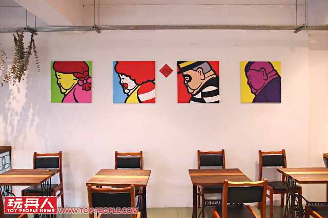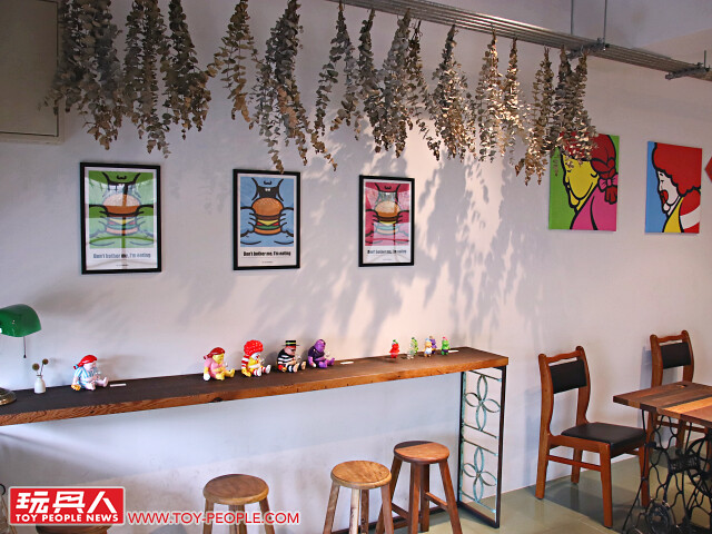 美美的復古店面放上玩具來搭配,邊吃美味漢堡、邊喝汽泡飲,然後看著玩具跟牆上的畫作,實在太讚啦~