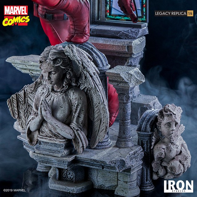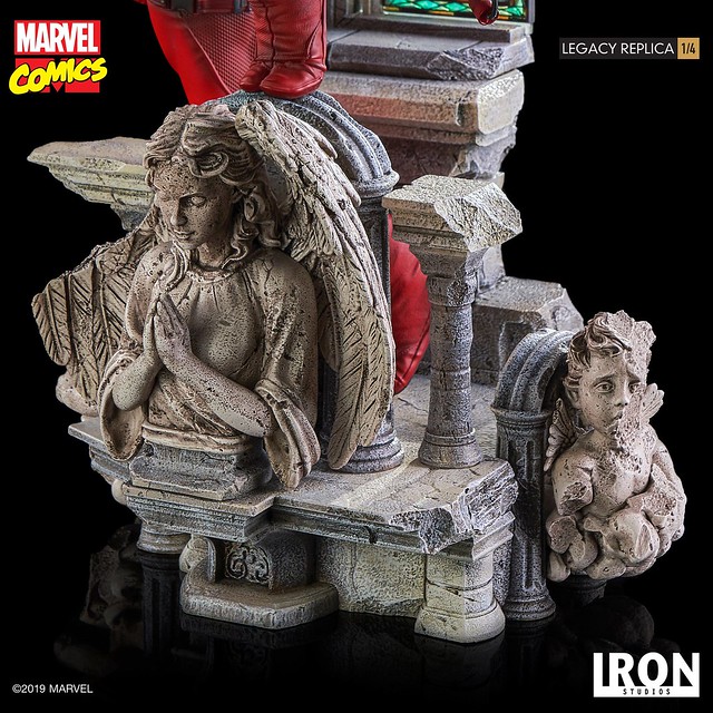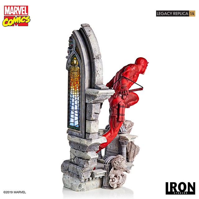 「Legacy Replica 夜魔俠」高約60 公分,以高水準的工藝技術雕琢出紅色緊身戰衣下的肌肉形狀、因動作而產生的大量皺褶,以及腰帶、棍套、異質拼接的豐富細節,展現出麥特雙手握著招牌武器Billy Clubs、彷彿正在以耳朵監視地獄廚房每個角落的姿態,以教堂為題製作的地台也有出色的表現,除了刻畫出寫實的石像裂痕與粗糙顆粒感外,夜魔俠身後的彩色玻璃更有著極為絢麗的繽紛色彩。