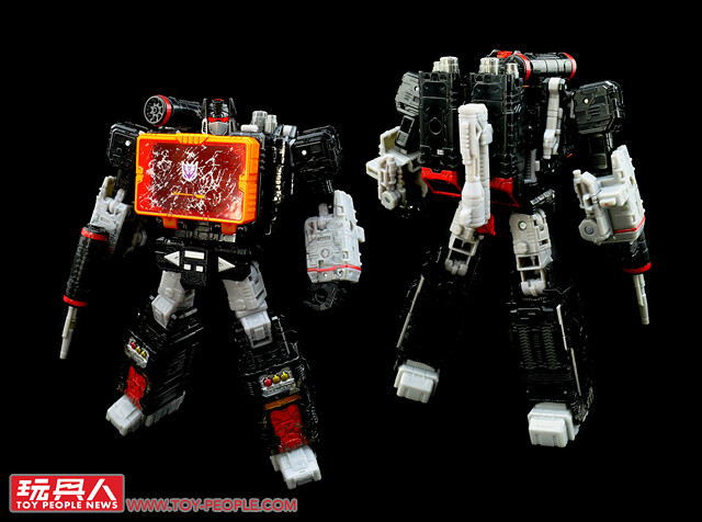 ▼ WFC-S63「音爆」(Soundblaster),登場於日版的《頭領戰士》(Transformers: The Headmasters)動畫,是狂派(Decepticons)諜報頭子音波(Soundwave)與宿敵爆破者(Blaster)同歸於盡後,再度復活的強化樣貌。本次的圍城參考了當年G1版玩具的配色,重新打造音爆的新版本,不僅重現他獨特的黝黑塗裝,胸口也按照當年玩具的設計作了貼心的調整喔!