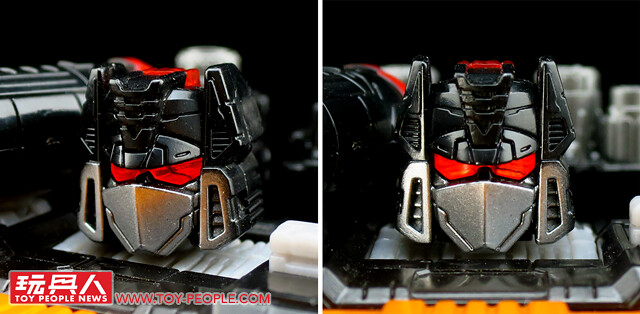 ▼ 與音波相比除了配色、最大的差異就在這大大升級的胸部!新版音爆的胸口也和G1玩具相同,更改為可以一次收納兩副卡帶的魔術大空間!