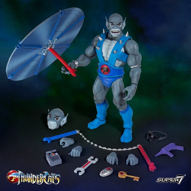 「Thundercats Ultimate Figure 猛貓」高約17.7 公分,再現了動畫中肌肉感十足的身形線條與藍、灰的毛色,與其他夥伴不同,猛貓沒有蓬鬆、飛舞的頭髮是個大光頭,本作附屬了一般、怒吼兩種頭雕,武器配件包含雙節棍、揮舞狀態的雙節棍、扳手、焊接槍、護目鏡、鑰匙(Key of Thunera)、Thundrometer......等,豐富的內容讓人覺得誠意十足呀~!