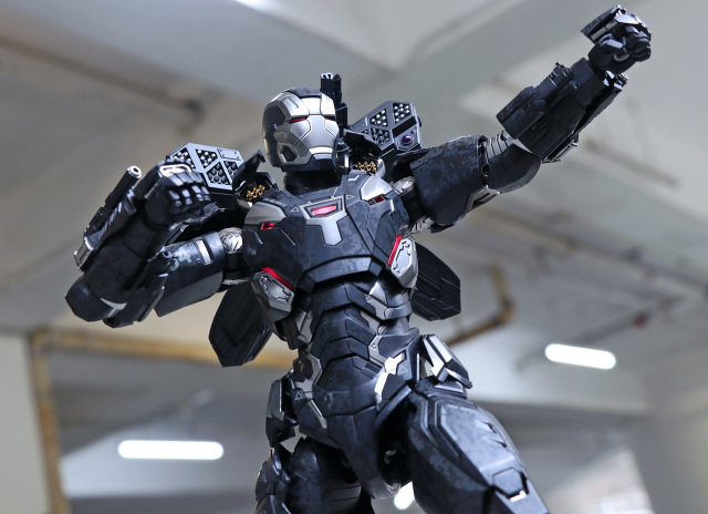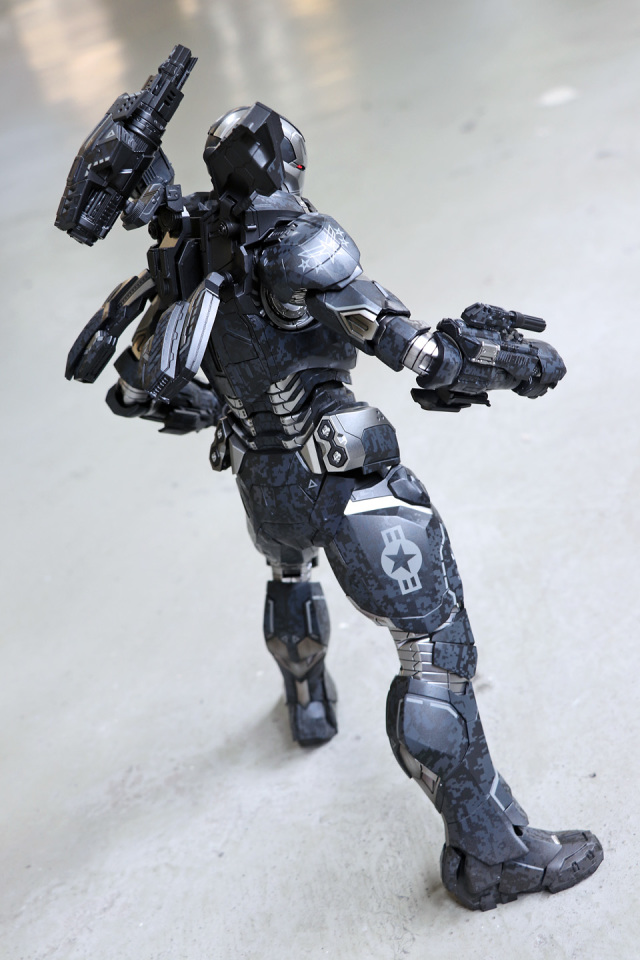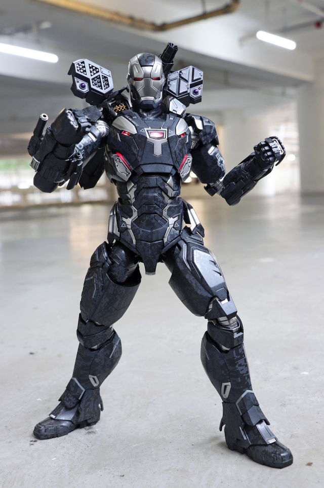 主體高約 32cm 及超過 30 個可動關節,成形色以仿金屬質感的深灰及銀色為主,全身印上數碼迷彩圖案及於局部位置上印上機體編碼與星形圖案。配件主要包括一顆 James Rhodey 可揭開面罩的頭盔頭雕、3 對可替換手掌和一個會場預訂的 War Machine MK-IV 專用 Outrider 情景地台連情景紙等。本體 Arc Reactor 連同頭盔雙眼及雙掌皆設有 LED 燈,背部配有外置5組可動式的重型武器。包括一枝可動式重型機槍、一對肩膊機關炮及一對可展開的背翼裝甲,每組均備適量的角度調節功能,同時前臂可裝上兩組機關槍及兩肩有內藏式飛彈裝置等。