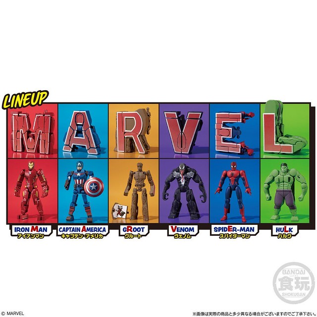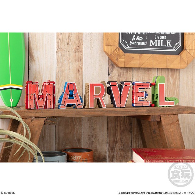 由日本萬代玩具公司食玩事業部「BANDAI CANDY」發行的「超變換!!文字變形 (暫譯,超変換!!もじバケる)」系列發表了來自MARVEL 的新商品「超變換!!文字變形 漫威套組」(超変換!!もじバケる MARVEL Complete Box)!預計將於2019年11月發售~!