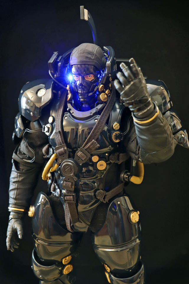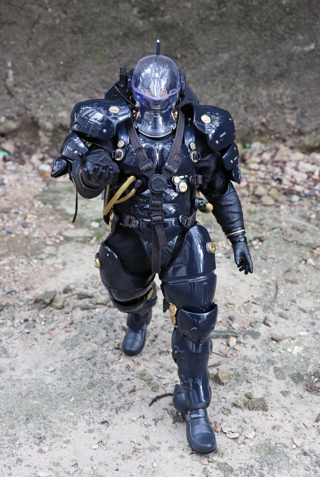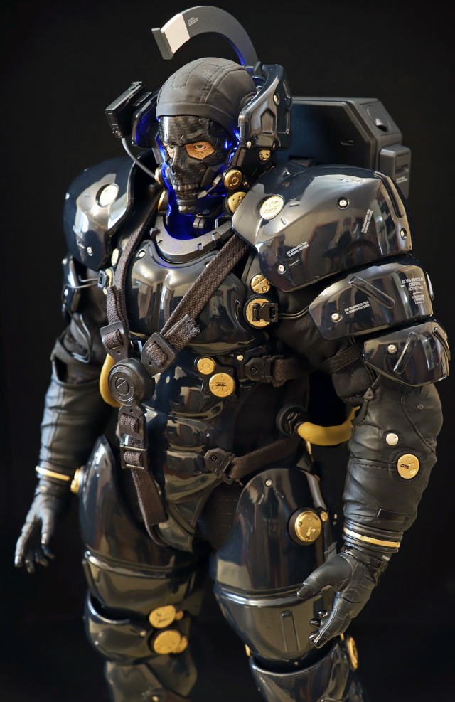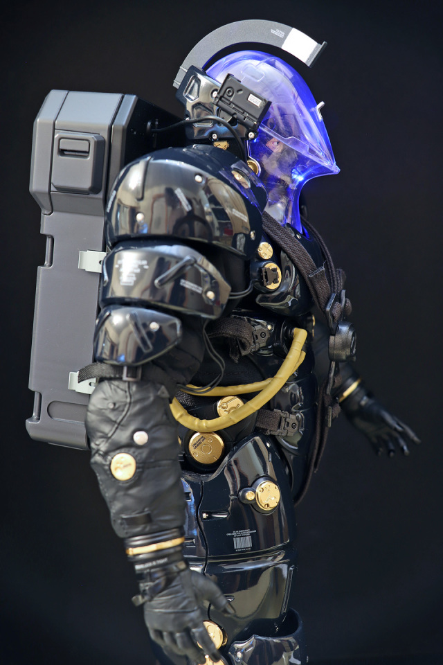 太空服由多種質材如 ABS、PVC、布等組成。鐵線及 PVC 喉管分佈在身體及背包,主體顏色以黑、金、灰作配搭;外甲以光澤噴塗製作,故外觀質感表達十分出色。可動關節的分割部位幾乎完全隱藏,讓作品更具厚重感與真實感!