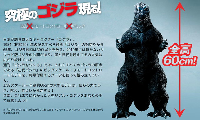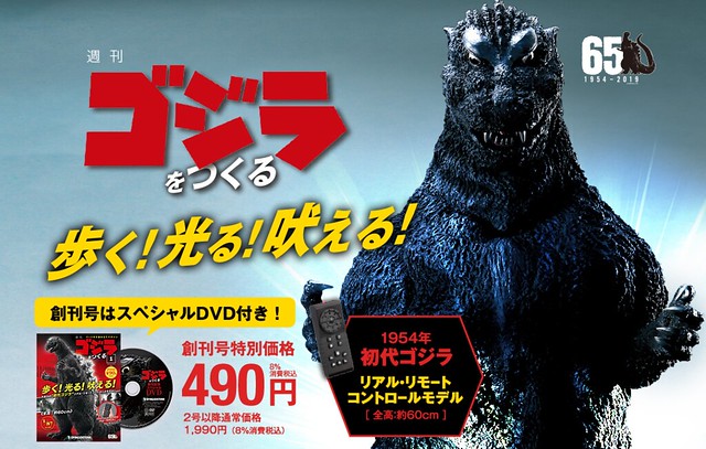 由日本 DeAgostini 公司(株式会社デアゴスティーニ・ジャパン)發行,以組裝可遙控哥吉拉模型為賣點的週刊《製作哥吉拉(ゴジラをつくる)》已於昨(27)日正式推出創刊號。此刊預計推出全 100 號,創刊號特別售價為 490 日圓,往後每號則為 1,843 日圓+稅。