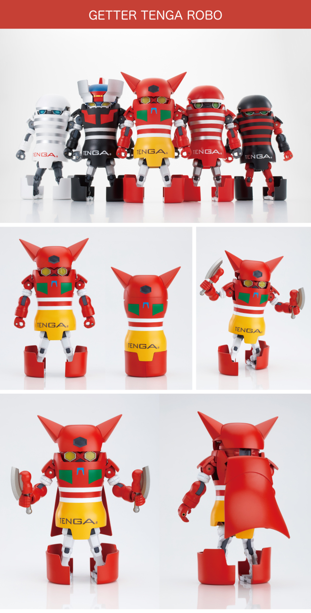 原本 TENGA 機器人的模樣,是由旗下著名的飛機杯圓柱體變形而成,這款聯名版的「蓋特 TENGA 機器人」(ゲッターTENGAロボ),則是將原本的橫條紋花樣,改以蓋特機器人裡面,負責空戰擔當,由流龍馬當主駕駛的「蓋特 1 號」(ゲッター1)之造型。頭上兩根左右對稱的尖刺造型,加上由 3 號機的黃色機身變形而成的腰部,完完全全就是大家熟知的蓋特啊!