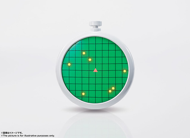 「PROPLICA 龍珠雷達」以劇中形象假定的等比例尺寸製作,忠實再現有著網格的綠色面板,透過 LED 燈表示雷達上的標記。雖然現實中沒有能召喚神龍的龍珠給你找,但能運用 PROPLICA 龍珠雷達內建的兩種模式來模擬尋找龍珠的樂趣!此外商品中還附上了專用台座和腕帶,方便展示與攜帶!